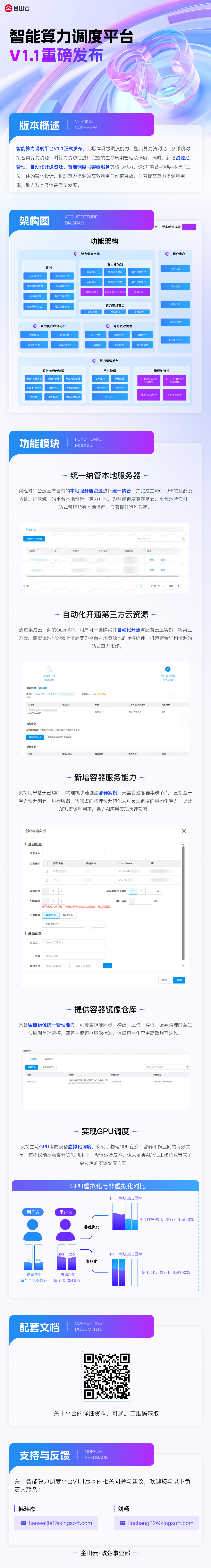 以上就是金山云为您带来的智能算力调度平台V1.1重磅发布的全部内容,如果还想了解更多内容可访问金山云官网www.ksyun.com了解其它资讯。