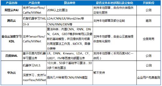 IDC发布的中国机器学习云服务产品概览