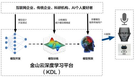 在上层框架层面,金山云为用户提供模型开发、模型调试、模型训练、模型 部署、模型管理等一站式深度学习研发服务。金山云认为用户的挑战不仅存在于模型训练阶段,在研发人员深度依赖的开发、调试方面也会遇到大量问题。因此,除了为用户提供高可用、高性能、可伸缩的模型训练和模型在线部署服务,KDL还专门针对 AI 研发团队提供专业的模型开发和调试支持,支持开发环境的快速部署和无缝迁移,并提供多部门子账户等细粒度的资源管理及动态调配,有效支持多场景下AI研发团队的分工协作。