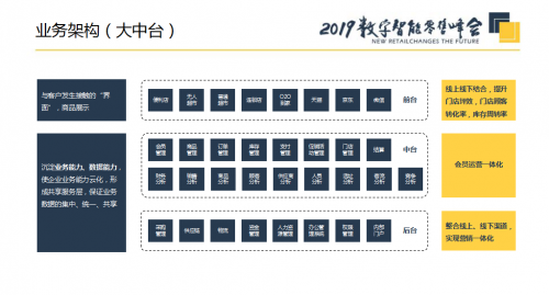 但新零售也面临诸多挑战。于涛表示,新零售主要面临三方面的挑战,第一,线下零售商在技术深度和广度方面积累不足。第二,线上线下难以融合。第三,成本难以降低。零售企业要转型新零售并且战胜上述三方面挑战,需要结合自身业务和需求,做出清晰的梳理。简要而言,新零售牵涉到诸如线上订单到门店自提、线上订单门店发货、服务全链路、实时协作、实时库存等业务场景,由此搭建业务及逻辑架构。