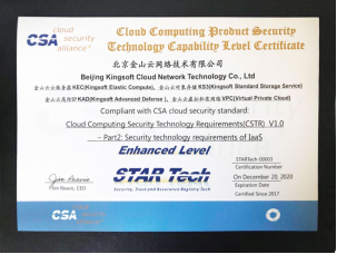 此次获得STAR Tech云计算产品安全技术能力增强级认证,标志着金山云安全能力和水平的进一步提升。近年来,金山云的安全体系屡次获得权威机构的高度认可,陆续通过国家信息安全等保三级、ISO9001、ISO27001、可信云安全认证、CSA的C-STAR权威认证、首批增强型云计算服务能力认证等。据IDC最新发布的发布《IDC MarketScape:中国云服务提供商,2017厂商安全评估》报告显示,金山云位居国内安全等级最高的云服务厂商之列。以上诸多认证和报告,显示金山云在云安全建设上,已达到业界领先水平。