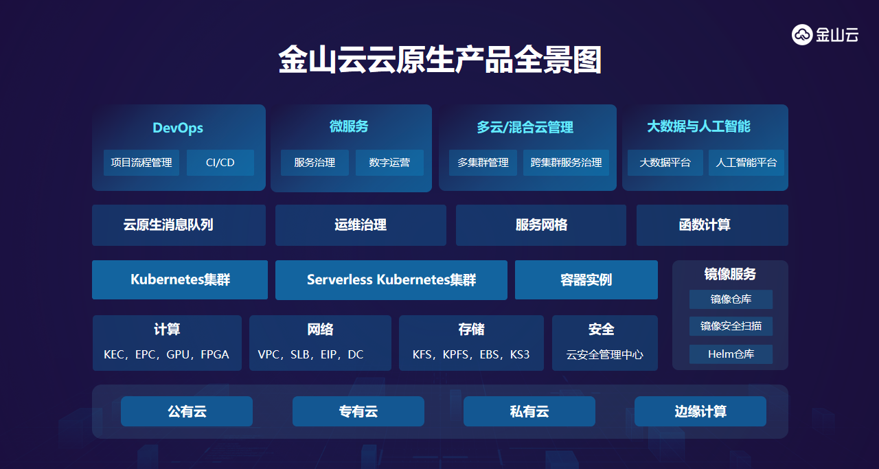 “从云计算1.0到云计算2.0,IT设施与客户需求发生了显著变化,云计算1.0时代主要完成了IT服务的云化;云计算2.0时代,是一个为云原生而生的时代,整个云计算行业与客户需求更加紧密结合,正逐步形成一幅宏大的产业图景。”金山云副总裁、合伙人钱一峰在2020行业信息化技术创新发展峰会上讲到。随着云计算2.0时代全面开启,金山云在近年来陆续推出了一系列云原生产品和服务,帮助客户更好地迎接云计算2.0时代的机遇与挑战。