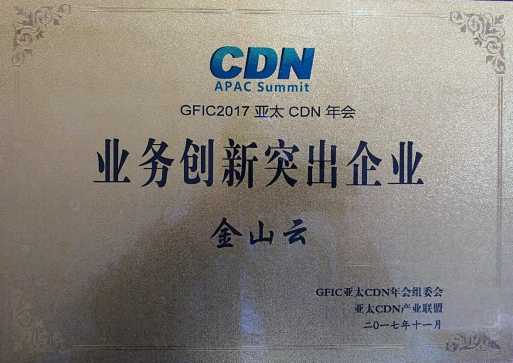 金山云荣获“亚太CDN年会业务创新突出企业”奖
