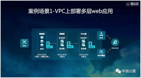 具体来看,在部署Web应用方面,面对企业在上云时要求实现部署快速、安全可控、业务分层的需求,金山云通过三层网络规划,配合安全组、ACL等功能进行访问控制,并结合SLB和NAT实现统一的接入接出,做到网络规划分钟级完成、业务隔离化和服务可扩展。目前,金山云混合云已经在智能家居、医疗等领域取得了亮眼的成绩。
