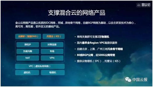 “金山云混合云致力于打造成规模、多元化、有特色的行业解决方案,根据客户的不同需求,可以提供专线、VPN、云物理机(EPC)、专属云和异地互联多活/灾备连接等诸多专业技术,为用户提供更先进、更可靠的云计算服务。”侯震宇表示。